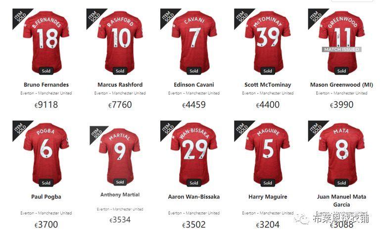 下图是某网络平台号称出售的曼联落场+签名球衣,拉什福德的球衣售价在7000多英镑左右。