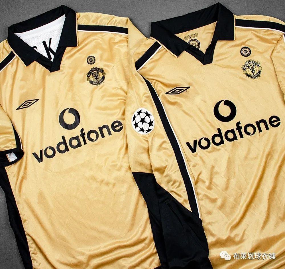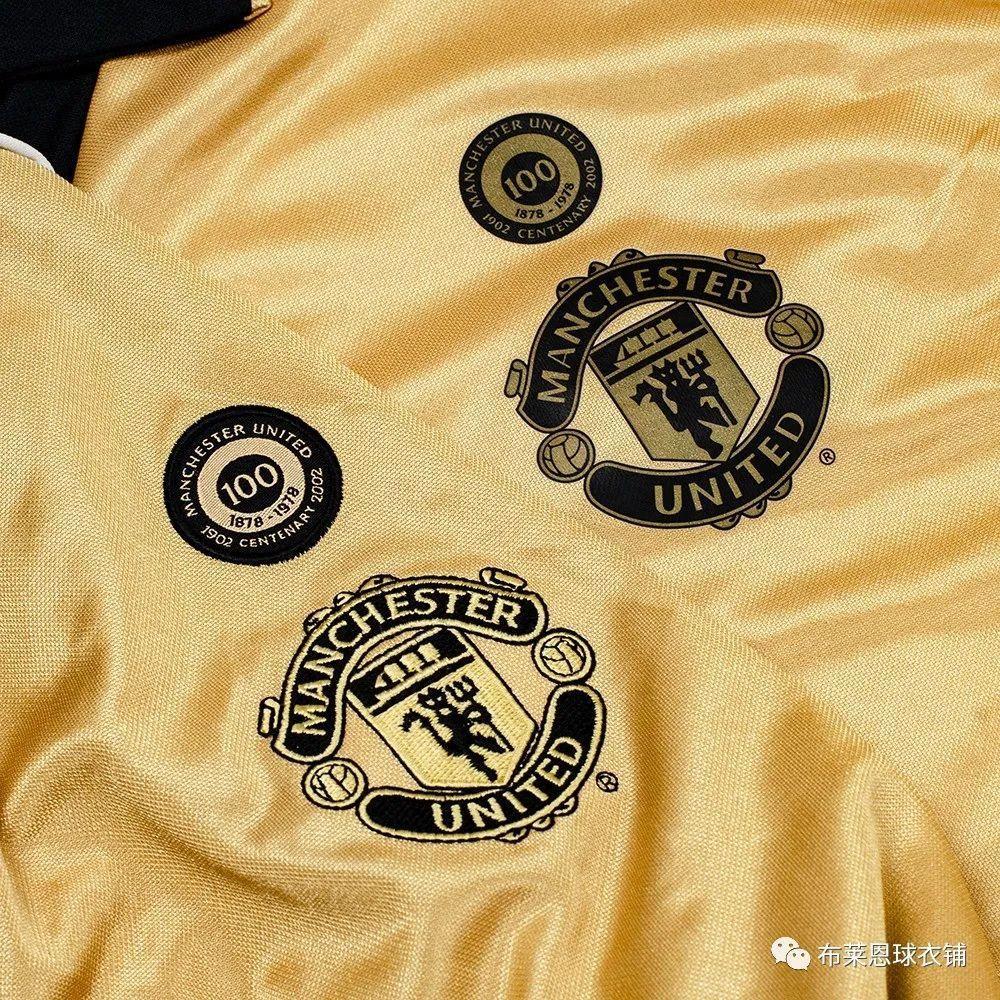 当年Umbro为曼联准备的百年纪念球衣。球迷版可正反穿着,分别对应白色客场和金色客场。