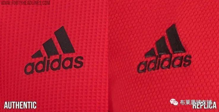 右侧为球员版刺绣商标,左侧为球迷版烫印商标