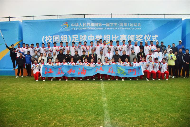 本届比赛江苏男足中学组代表队由常州市北郊高级中学组队参赛。队伍组建得到了省教育厅、体育局、校足办的大力支持,在江苏省江宁足球训练基地全力配合下,队员们历经八个月的艰苦备战,最终站上最高领奖台。