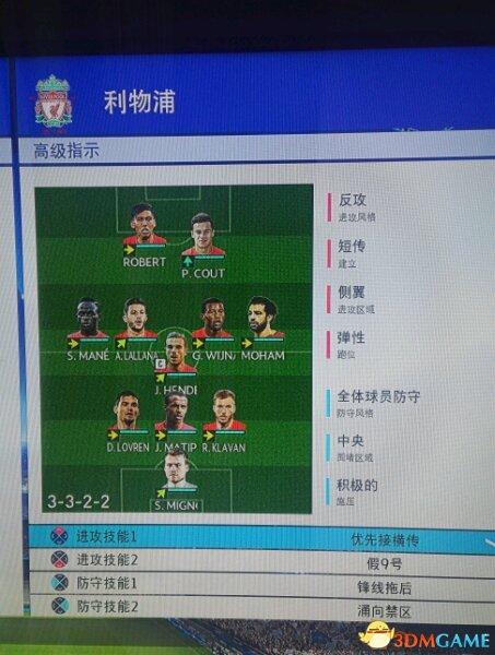 施压 积极的。这一设置的效果,在本方半场,由于防守人数优势,球员之间相互有补位情况下,亨德森,马内,萨拉赫,洛夫伦和克拉万,以及身后的马帝普,均可以利用自身能力大胆贴身上抢,让巨星电脑球员始终无法舒服拿球,使其无法形成有效进攻。