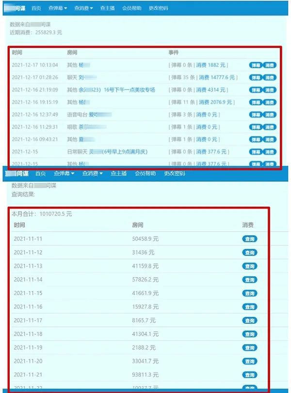 对外公开售卖的一是每月360元的主播数据查询,包含主播30天内的收入数据、直播间大哥榜单、大哥消费数据等;二是每月240元的“榜一大哥”打赏数据查询,包含“榜一”近1年打赏的直播间、打赏金额等。