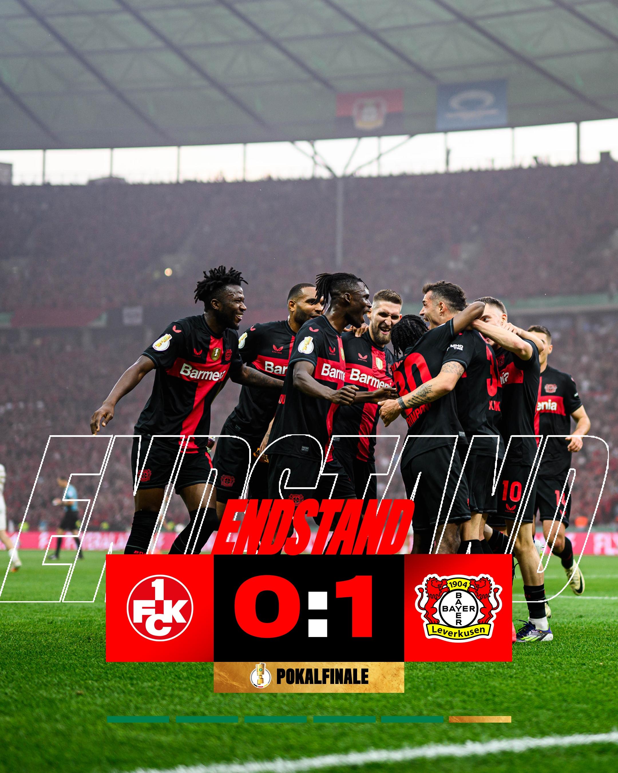 德国杯决赛,勒沃库森击败凯泽斯劳滕,队史首次拿下双冠王!
