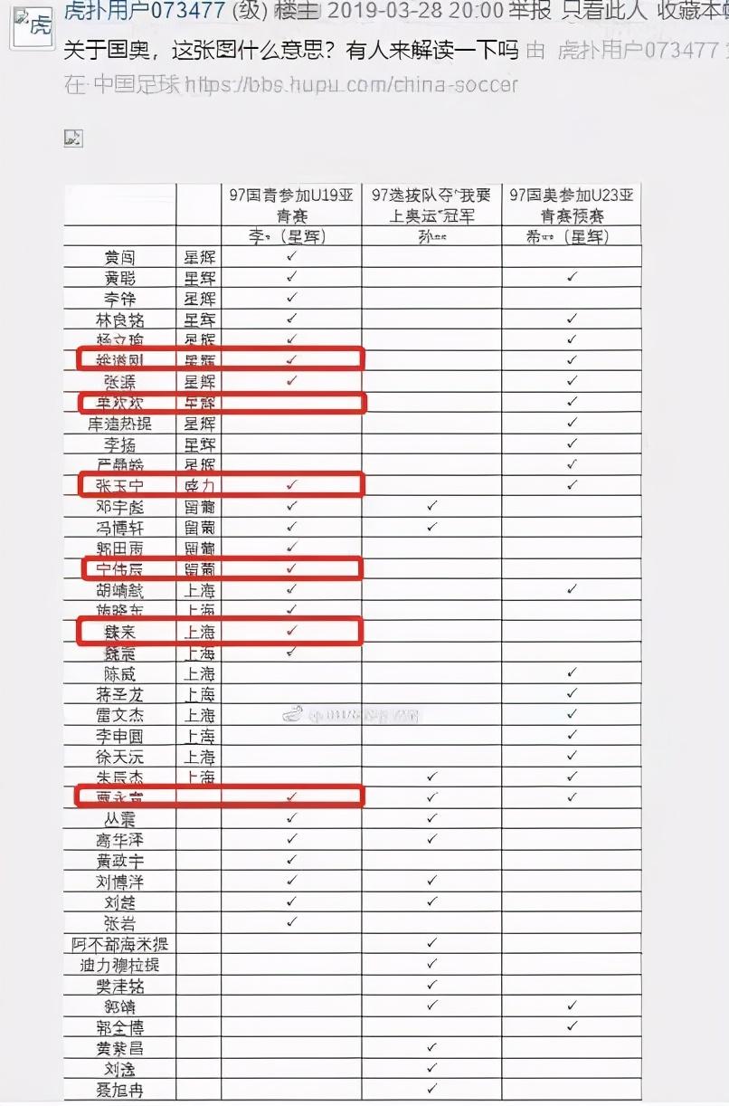 昨天文章的最后,列出虎扑上的一张有关97国青队用人的表格,表中李明和希丁克的用人有颇多交集,而孙继海恰恰相反。表格中标注「星辉」字样的球员,特别受到李明和希丁克的青睐。