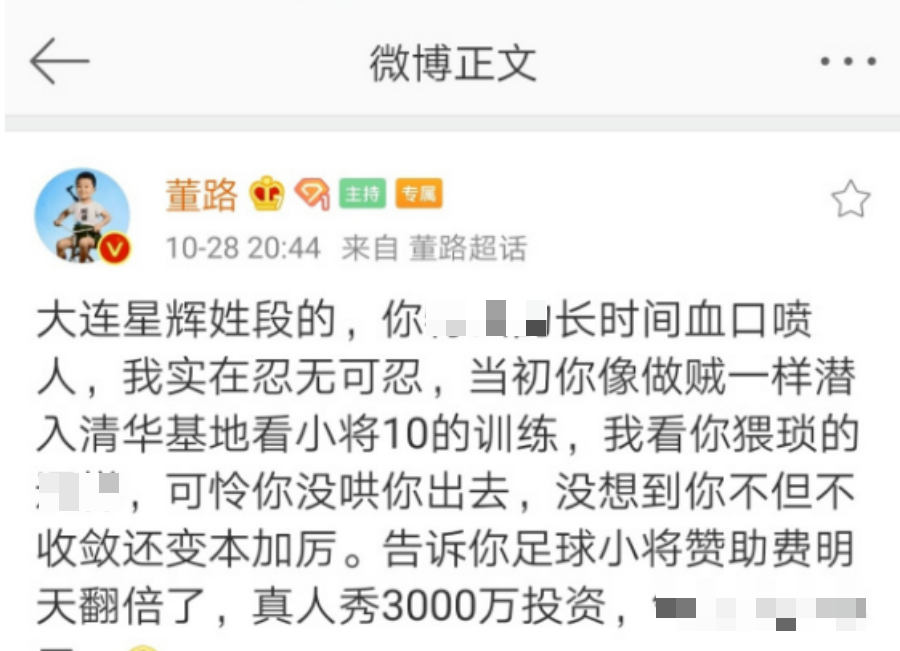 董路质疑李明和星辉公司,到底是出于公义还是私愤,这很难说清。从公义上来说,董路质疑「人情关系」”甚至「利益输送」是为中国足球好,从私愤来说,有报道称董路足球小将里的一名天赋出众的小球员后来加盟大连宏驰足球俱乐部,对此而耿耿于怀。董路还曾在网上直接叫骂「星辉姓段的」像「做贼一样」,对方也同样在网上予以还击,冷嘲热讽。