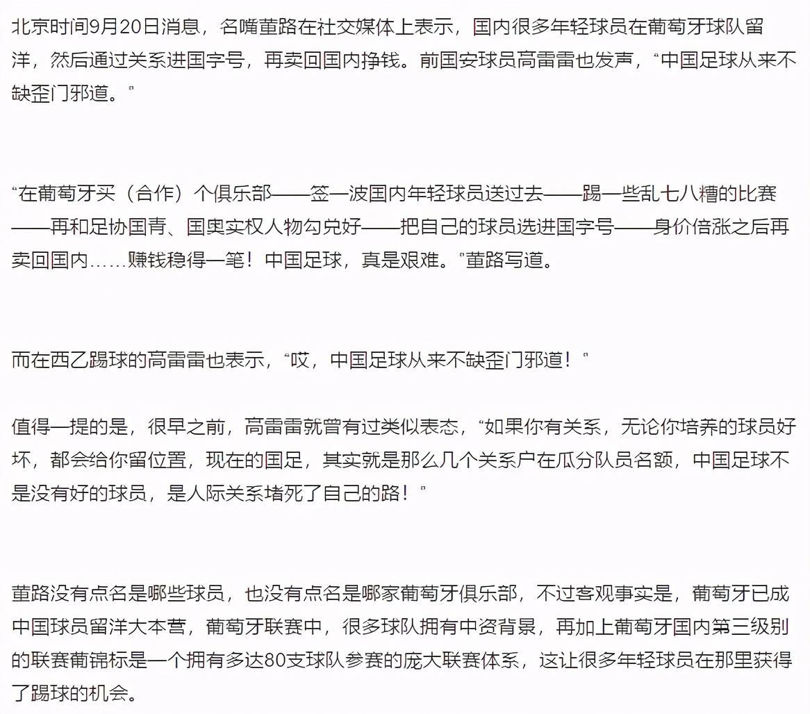 说了这么多,很多人说北京主场「ID:bjzhuchang」就是「黑」李明。其实我们要说的是,至少这篇文章绝对不是「黑」他,而是要为他澄清——没有任何客观证据能够证明这样的一个结论——于大宝当年的经纪人陈琪是葡萄牙留洋球员的大管家,而国内对接的是经纪公司是星辉,李明利用星辉公司在葡萄牙的关系,将留葡球员选拔到国青队「涮水」然后再推荐到国安队中。