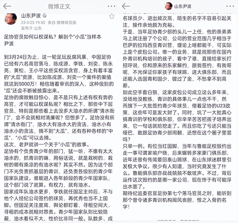 除此之外,尹波还举了个例子:“有位当红国脚,当年与鲁能足校毁约出走一事可谓家喻户晓,后来辗转多家豪门俱乐部,近年还曾有传闻要回泰山踢球,在山东球迷群里引发极大争议。很少有人知道,当时究竟发生了什么。鲁能俱乐部亦战战兢兢不敢吱声。不过,背后运作这次毁约的是哪一家公司,现在终于有可能浮出水面了。”