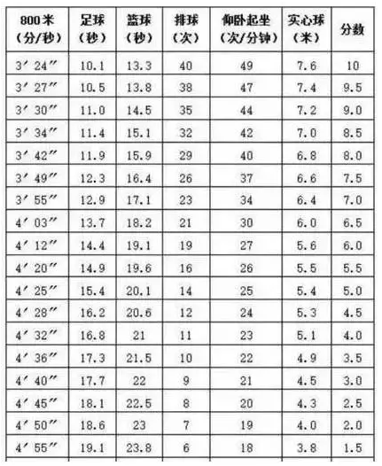 2016年北京初中毕业升学体育现场考试成绩标准(男)