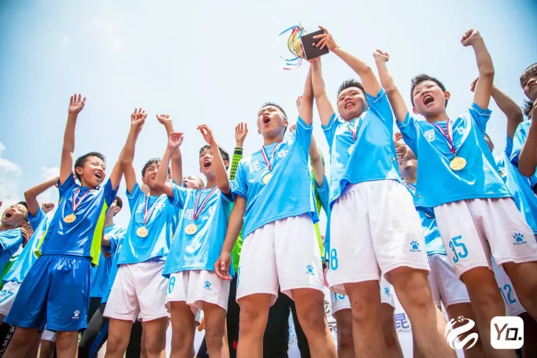 ▲2017龙之少年冠军赛昆明赛区初中男足冠军,刘校宏为左手举杯者