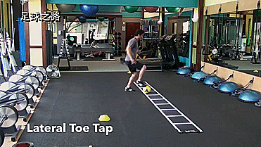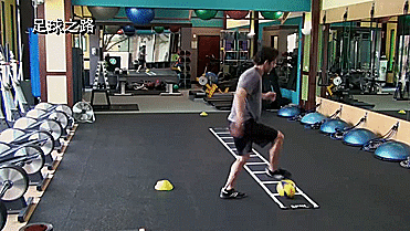 我们横向跨步三格,然后滑步撤回一格,重复直到敏捷梯末端,这个动作重复五组,组间休息30秒。