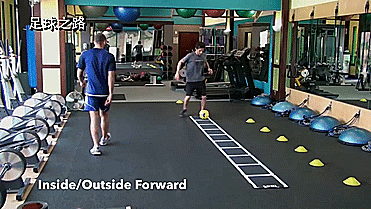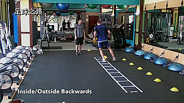第四个训练是横向跳三格侧向回一格,我们侧身面对敏捷梯。