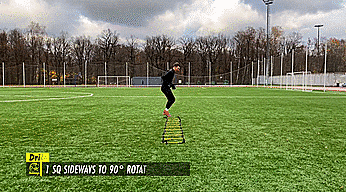 第六个训练是侧身一格90度转身,我们侧身从敏捷梯一端进入。