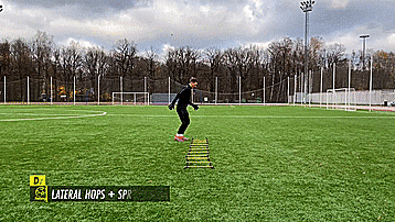 最后一个训练是单腿交替腾空到横向跨步跳跃,我们从敏捷梯一侧开始。