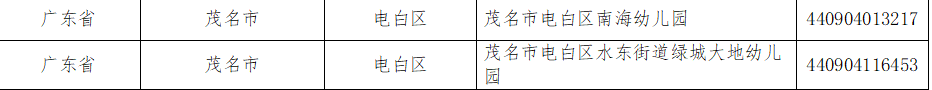 2所幼儿园被认定为全国足球特色幼儿园,分别为茂名市电白区南海幼儿园、茂名市电白区水东街道绿城大地幼儿园。