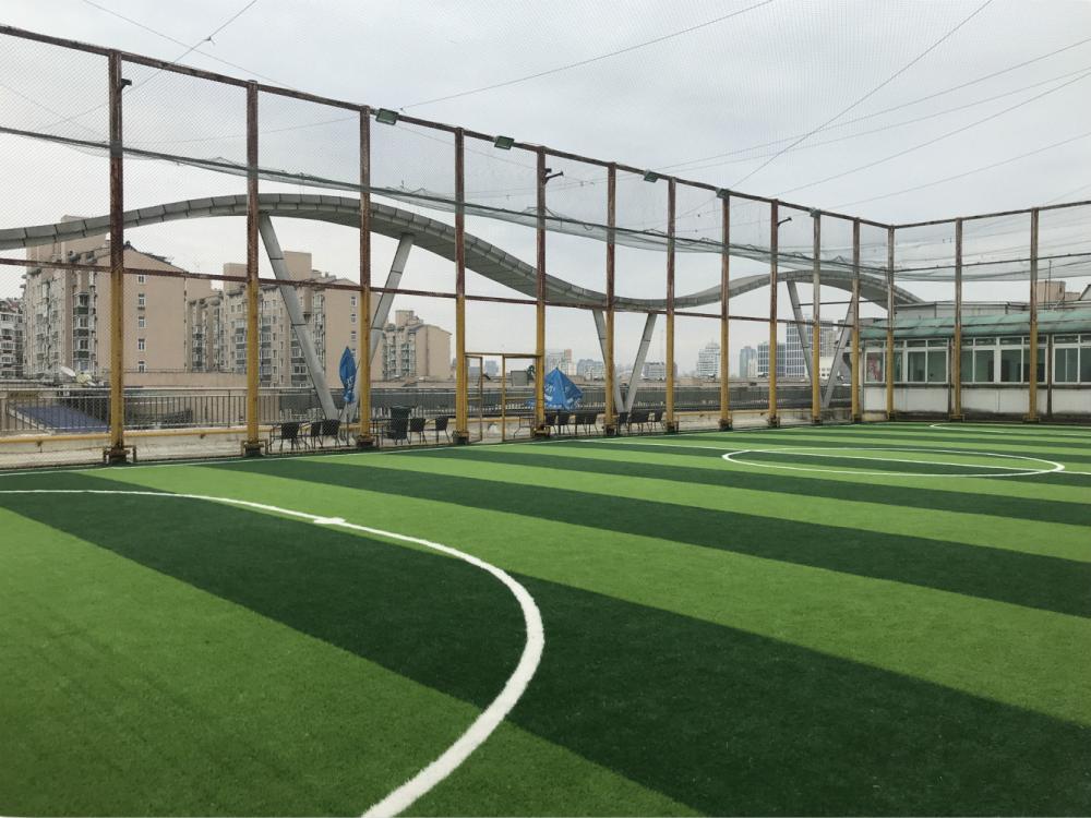 △楼顶足球场场地因空调管道等设备的建造,空间相对局促。