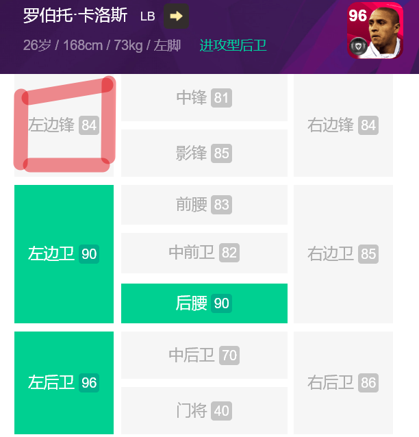 一些人或是把梅西放前腰不用位置训练技能卡,或是把卡洛斯放边锋,又或是一些没有热区中后卫放到边后卫或后腰,其实在游戏中,数据值会受到影响。