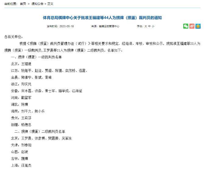 2023年国家体育总局棋牌运动管理中心公示的掼蛋裁判员名单