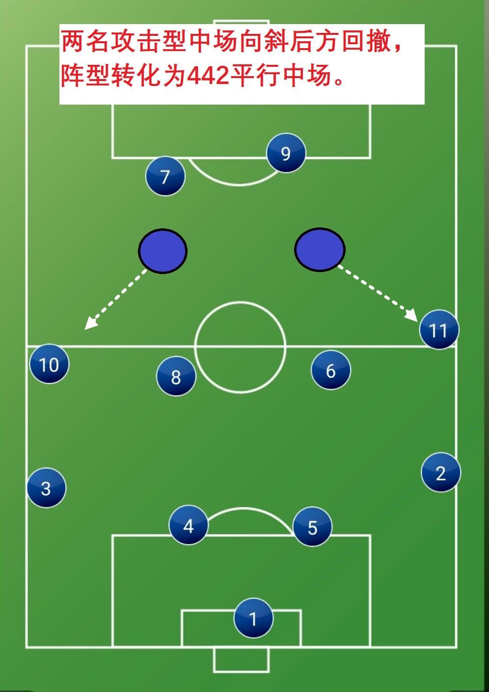 442蝶形中场与442平行中场的转化图解