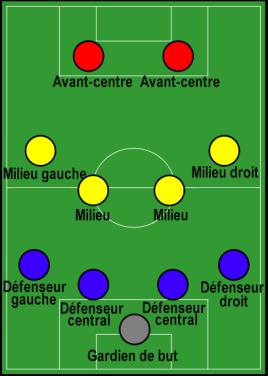 因为4-4-2蝶形中场阵型的中场球员呈双线分布,所以从整体来看,此套阵型会呈现4条线,其中前锋线一条,中场线两条,后卫线一条。