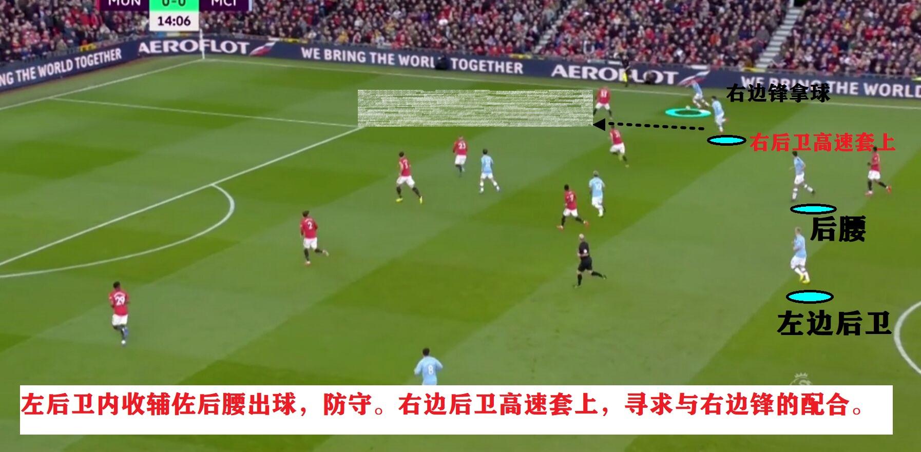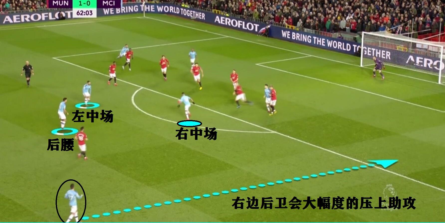 曼城的右边后卫卡塞洛会大幅度的压过半场进行助攻