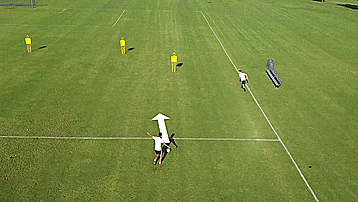 过顶长传顾名思义就是要能恰好过了防守队员的顶,让我们的进攻队员在防守队员身后接球。