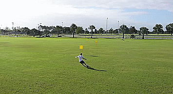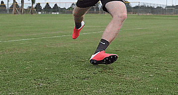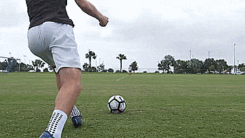 这个传球的关键是要把它放低,正如它的名字所示,滑过草地,就像下面这样,非常有力,非常低,这里的技术是,和普通长传球一样,用脚的骨头凸起部分击球。