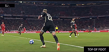 这个技巧在我们需要一脚大力传球且得带点弧线绕过防守队员时非常有用。