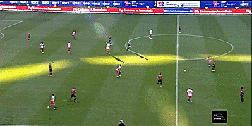 首先是这种长而直接的长传,飞行路径直接朝向它的目标,一个好的子弹长传,不是像气球一样软绵绵地在空中长时间飞行,而是有力量,有目的性的,基本上是人到球到的感觉。