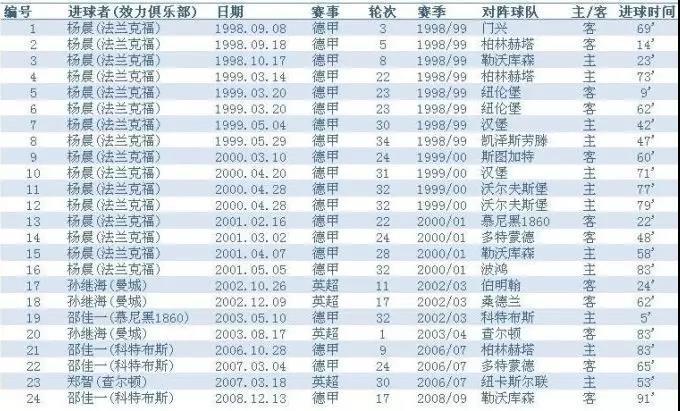回溯欧洲五大联赛的历史,不曾多见的中国球员共斩获过24个进球,其中德甲占据20球,英超则见证了4球。诚然,孙继海(3球)、邵佳一(4球)和郑智(1球)的欧洲足迹,都已借此载入史册,但若以产量作为对比,曾经开天辟地、收获了16个德甲进球的杨晨,终究是当仁不让的存在。在法兰克福,杨晨留下了99场23球19助攻的数据。