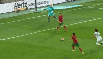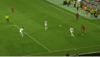 第89分钟,葡萄牙扳平比分!格德斯右路传中,C罗高高跃起,头球破门得手,1-1!