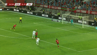 葡萄牙久攻无果,第45分钟,爱尔兰打破僵局:伊根接到角球之后,前点头球破门,葡萄牙意外地0-1落后!