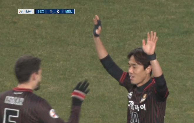 比赛第8分钟,朴主永禁区内包抄扫射,攻破了墨尔本胜利队的球门。这是朴主永连续两场亚冠进球,此前在附加赛,他也用进球帮助首尔成功晋级。