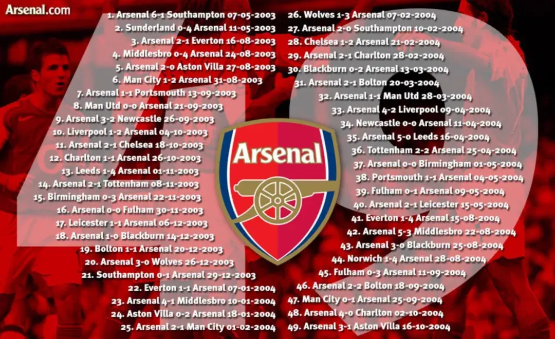 后来,阿森纳将英超不败场次延续到49场,这至今都是阿森纳与阿尔塞纳的至尊荣耀。