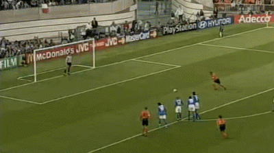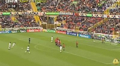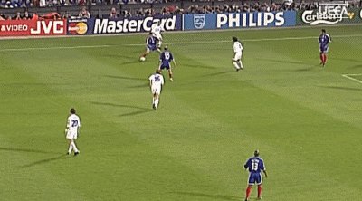 西班牙队与法国队也上演了一场经典之战。齐达内用一记干净利落的直接任意球,洞穿了卡尼萨雷斯把守的球门!