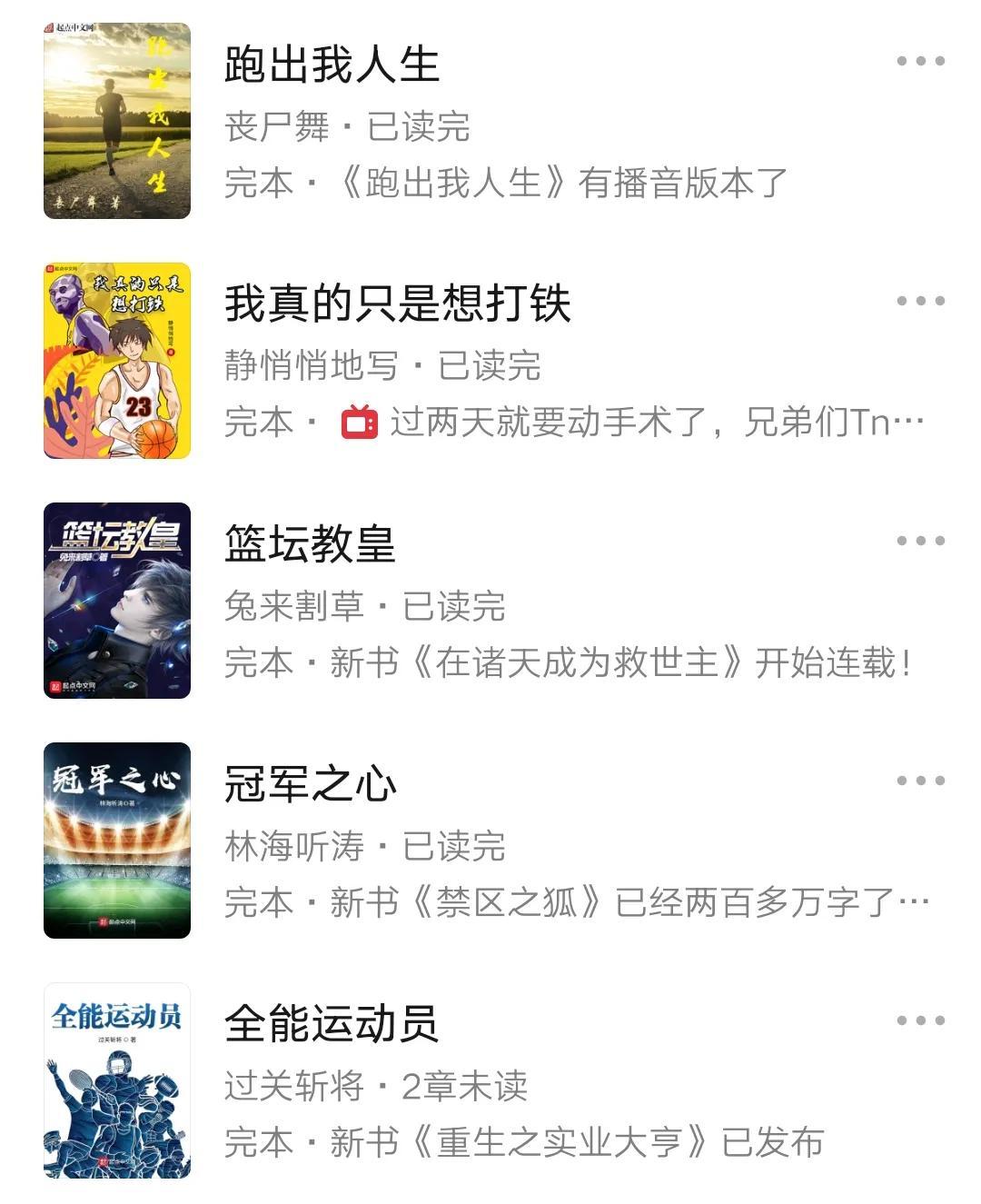至于之前的五本万订体育文,这里也按达成的先后顺序简单放一下。