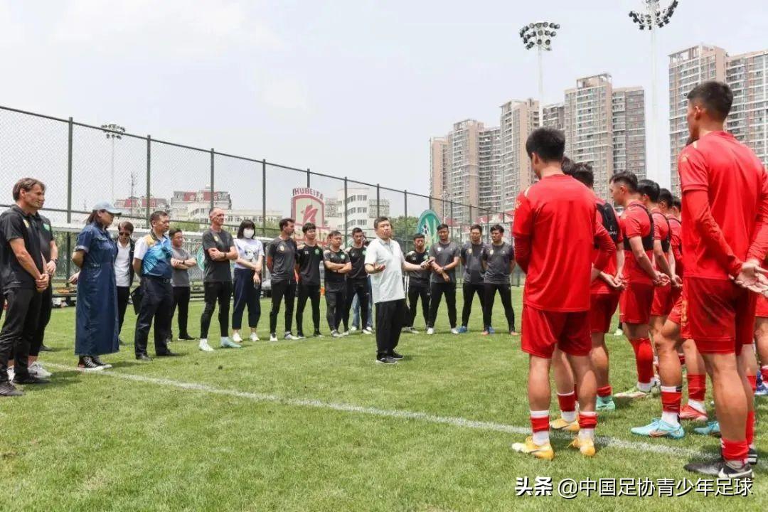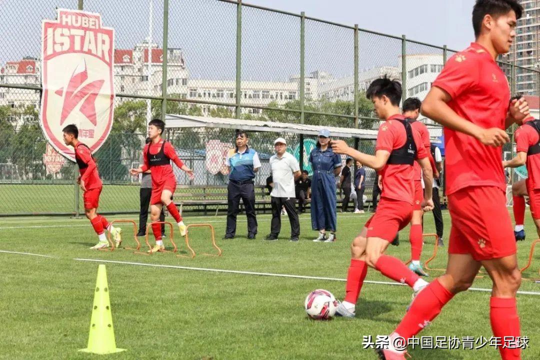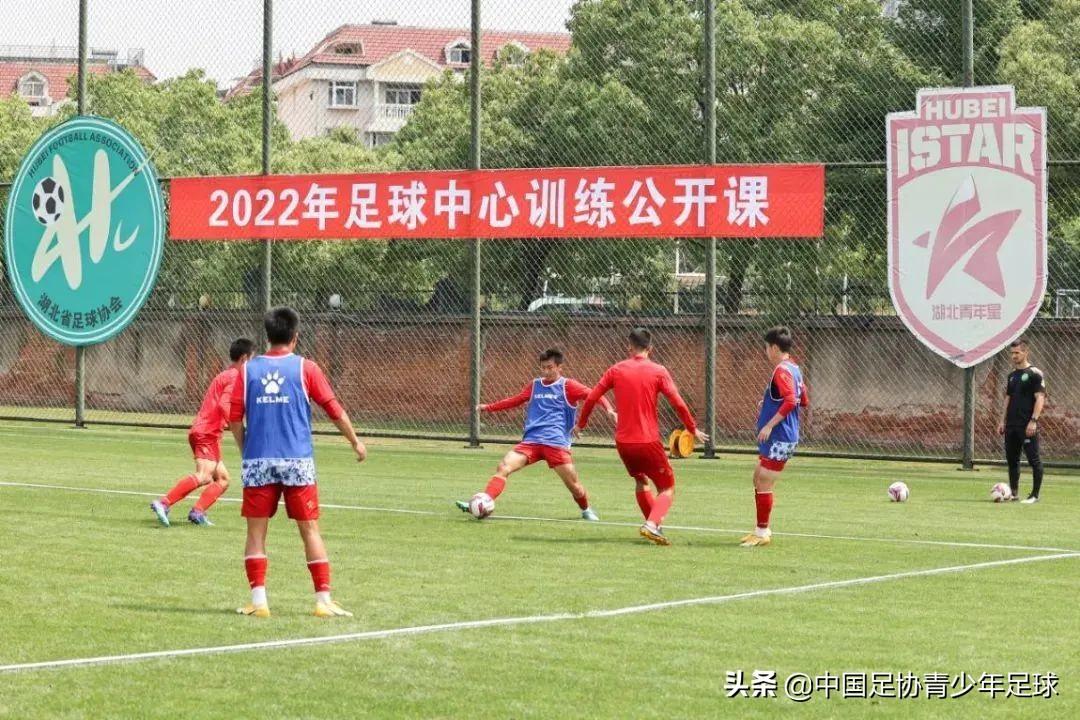 足球青年在绿茵场上努力奔跑、积极拼抢,教练员各司其职,严格指挥、认真讲解。湖北足球人挥洒着汗水,为实现“足球梦”砥砺前行。5月24日上午,在常青花园训练基地3号场地,湖北足球中心进行了2022年首堂训练公开课。湖北省体育局党组成员、副局长郑李辉、竞体处相关负责人、足球中心领导班子以及湖北足球青训教练近30人观摩了公开课。