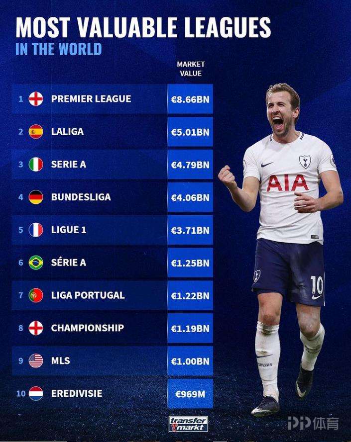 北京时间4月26日,德转盘点了身价最高的联赛前10名,五大联赛无悬念占据前5名的位置,巴甲、葡超、英冠联赛在列。中超联赛则在十名开外。