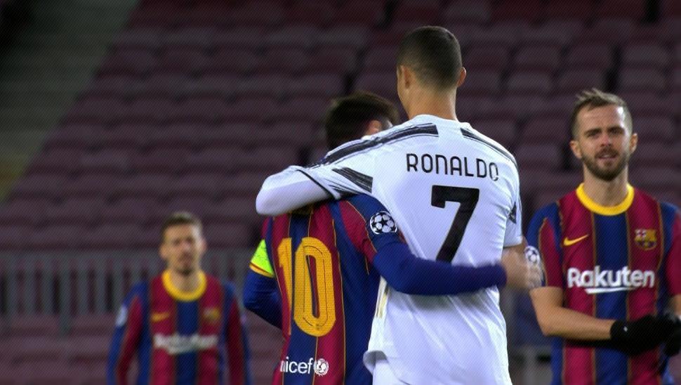 20-21赛季欧冠小组赛,拥有梅西的巴萨和拥有C罗的尤文展开小组第一的争夺。