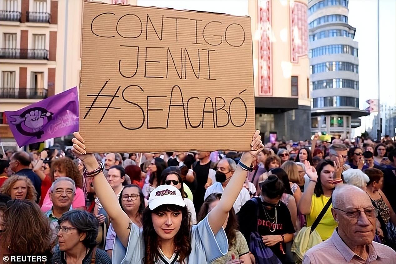 当地时间8月28日,数百人聚集在马德里的卡亚俄广场,手中举着纸板牌表达对女前锋埃尔莫索的支持。据悉,西班牙的女性权力组织还要在9月举行进一步的抗议活动。