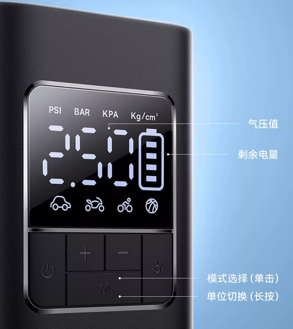 而且正面显示屏的存在,哪怕是小白用户上手也没有问题。液晶显示屏清晰直观,用户可以根据车辆制造商推荐的胎压值轻松预设,一键启动即可自动充至设定压力并停止,大大简化了操作流程,避免了过充或不足的情况,确保行车安全。