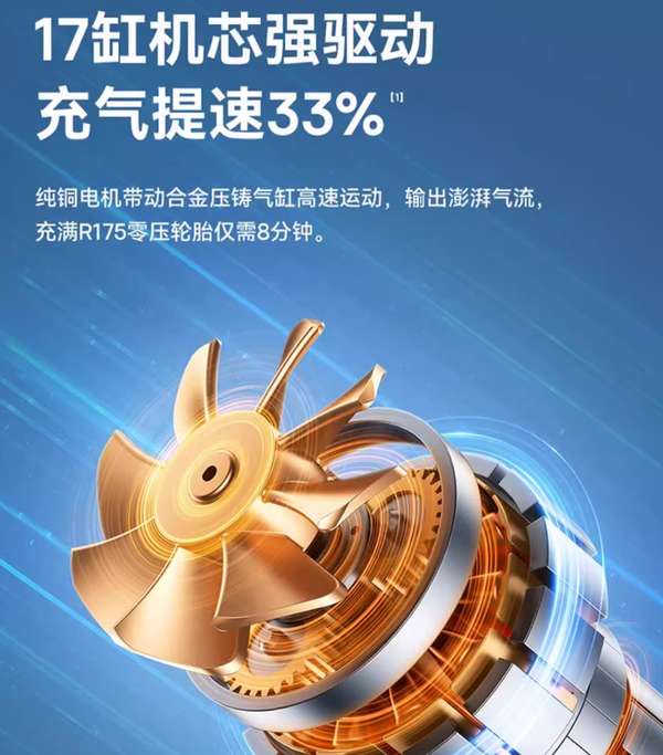 在补气性能方面,倍思车载充气泵则是拥有强劲的动力。通过17缸强大的机芯,最高能实现16000r/min的转速,根据官方描述其将0bar充满至2.5bar只需要8分钟。在实际测试过程中,确实体验到其强大的充气能力,即使是大尺寸SUV轮胎也能在短时间内完成充气,大大节省了等待时间。