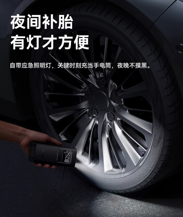 并且倍思还针对夜间场景进行了优化,充气泵配备了应急照明灯,这意味着哪怕是在夜间行驶过程中出现了需要补气的需求,它都可以帮助你精准定位到轮胎充气口位置,并且准确进行补气。