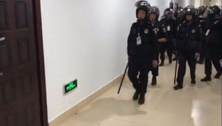 据毅腾方面介绍,随后部分手持警棍、盾牌的特勤人员赶到,用盾牌将球员隔开,让他们退回到休息室走廊。也就是在这个过程中,双方的对峙再度升级。从后来网络流传出来的视频中可见,冲突中出现了一分钟左右的黑灯时间,但双方的争吵声一直不断。随后室内灯光重新亮起之后,视频中出现了毅腾球员艾尔帕提·迪力夏提倒在地上的画面。