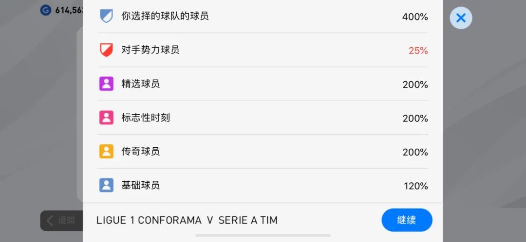 俱乐部类的就像国际服上一周的四大match day和国服体验服的米兰德比match day,这种俱乐部类型的match day使用的是自己的自定义球队而非系统预设,这样的话就有点像巡回赛一样,选择符合自己阵营势力的球员就会获得更多的积分加成,反之如果你选择对面势力的球员,那么积分乘数就会低的可怜。
