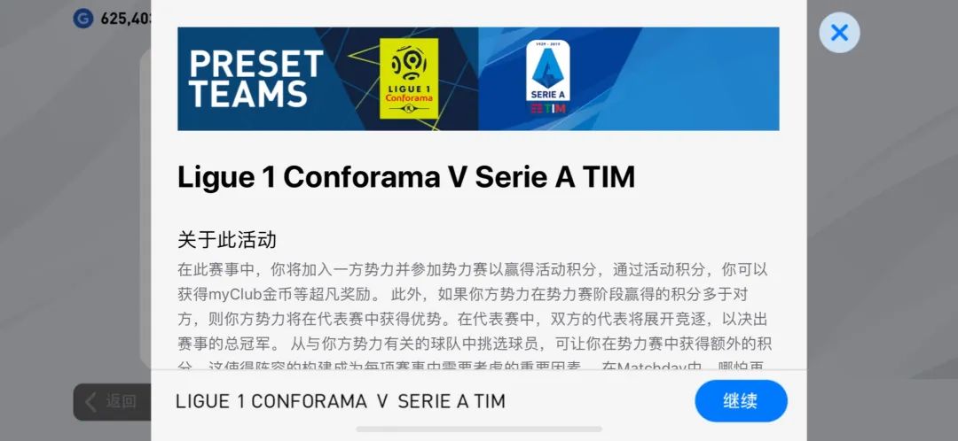 联赛类的就像国际服现在的意甲法甲match day和国服体验服的英超主客场match day,这种联赛类型的match day使用的球队就是系统预设球队,就是你选择球队的队套。