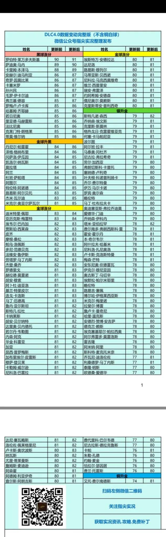至于数据变动,就是遵循国际服dlc4.0的数据变动,前面已经给大家整理过了,详情见图。但是例如b费虽然升黑,但是所属球队还是葡体,让我觉得很奇怪,咋更新还没更新全呢?