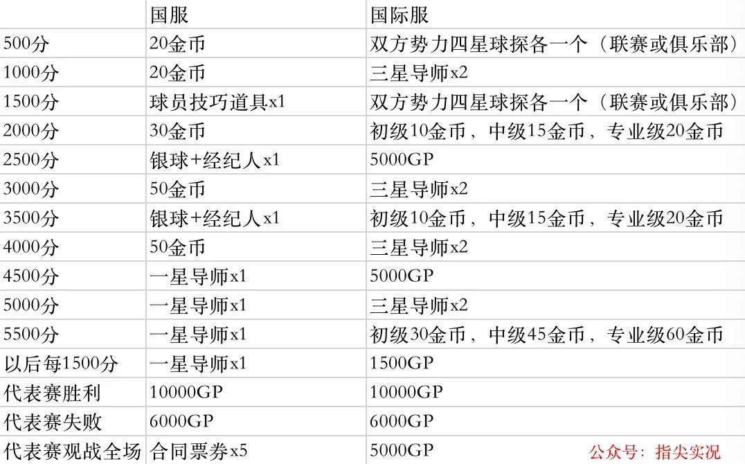 金币这方面国服的奖励还是更加好一点的,而国际服其他的奖励是match day双方阵营的球探和导师。相比之下国服的金币更多获得更容易,但是如果能引入国际服那种球探奖励的话,对于一些希望凑队套但是苦于国服拍卖行价格太高没有足够gp的玩家是一个相当不错的福利。