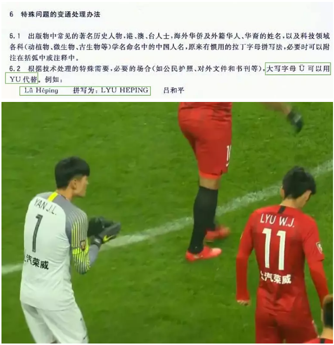 但是由于键盘上的26个字母中没有“ü”,我们都是用“v”来代替。所以在超级杯中,我们看到北京中赫国安后卫吕鹏的球衣背后,印的是“LV P”。