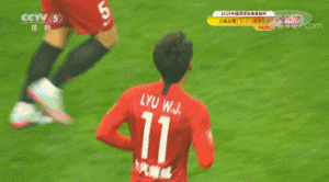 我们看上海上港球员吕文君的球衣后面,印的就是“LYU”。