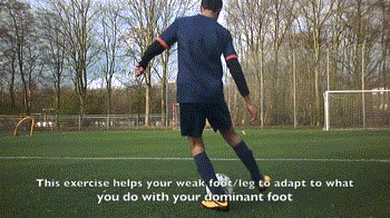 该项练习看似很蠢,也很无聊,但是长期下来,你的弱势脚传球会变得更加准确和有力。